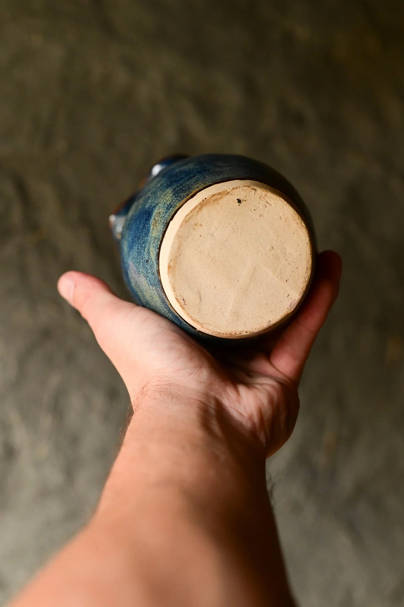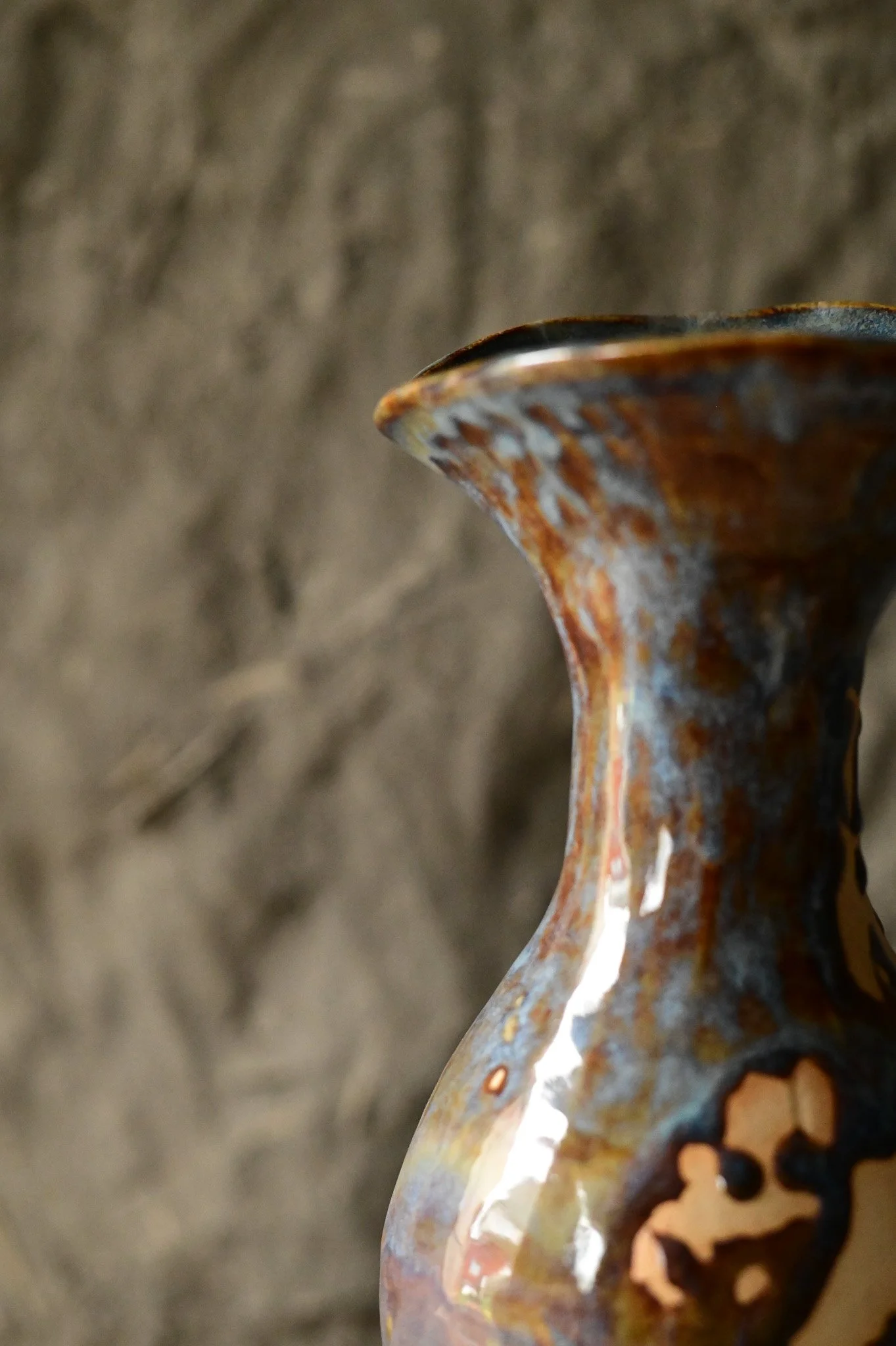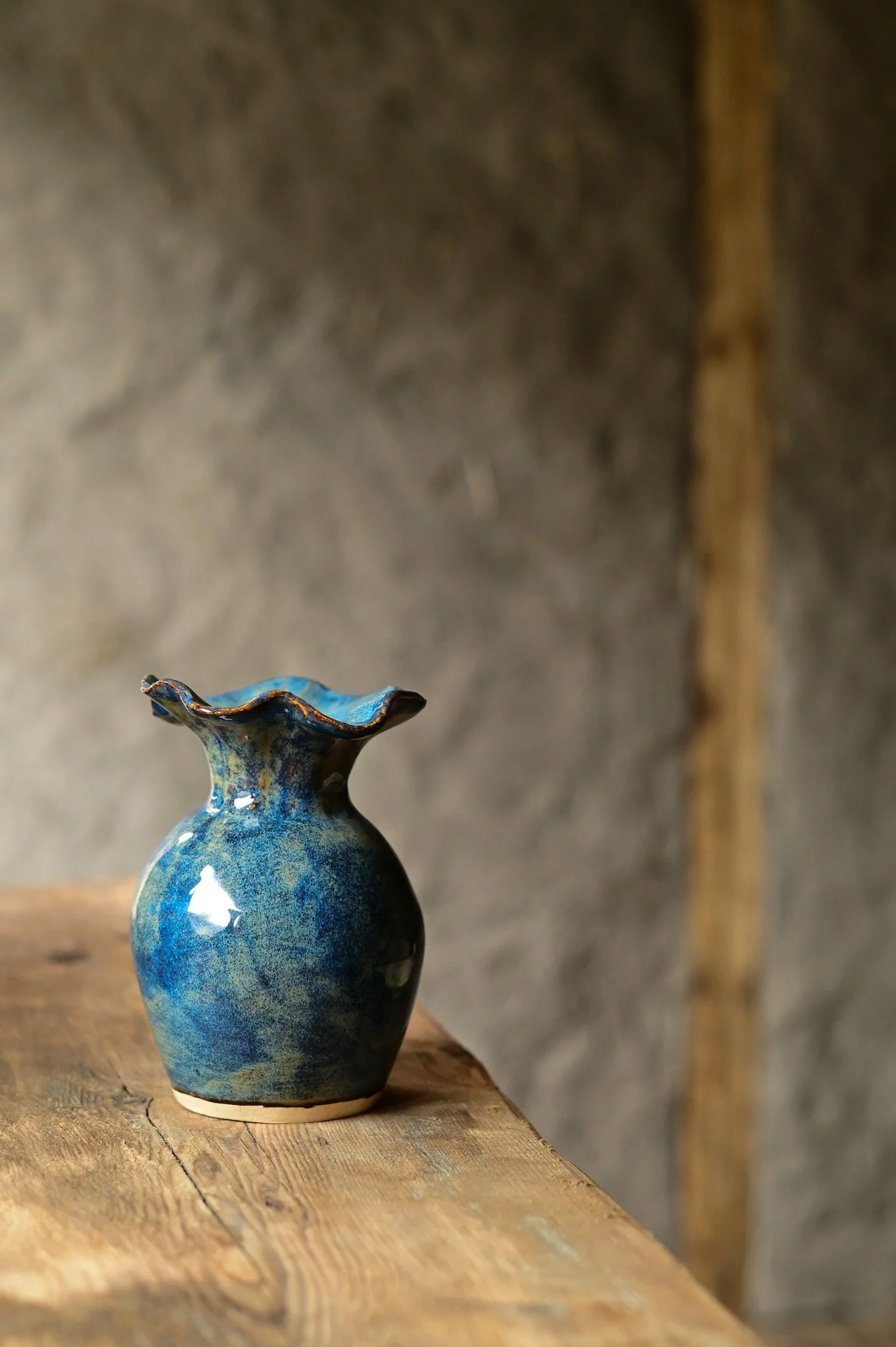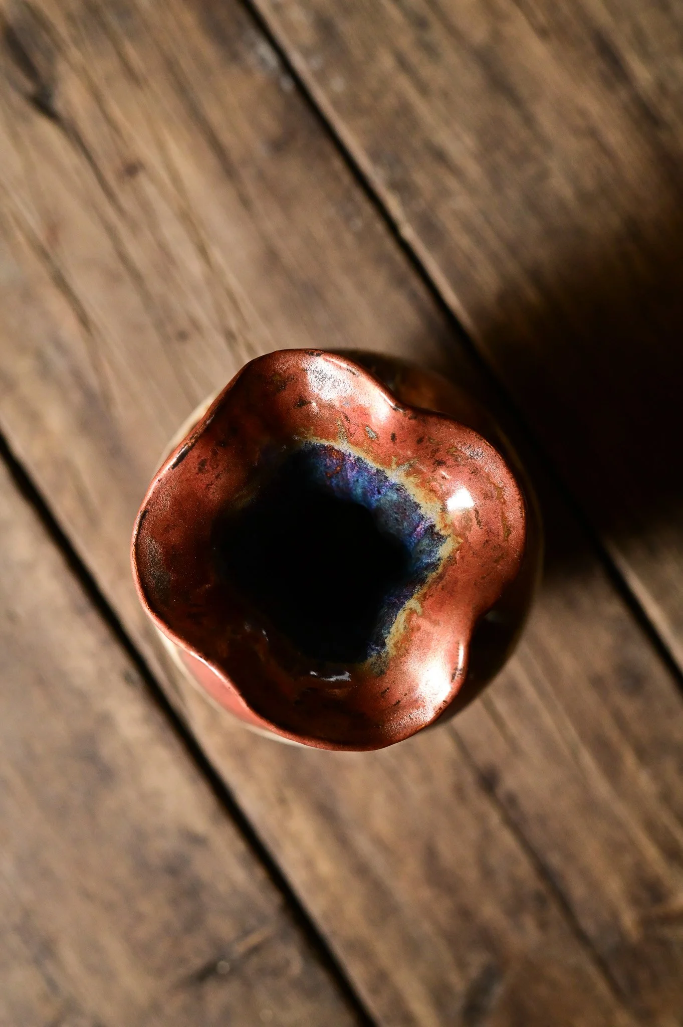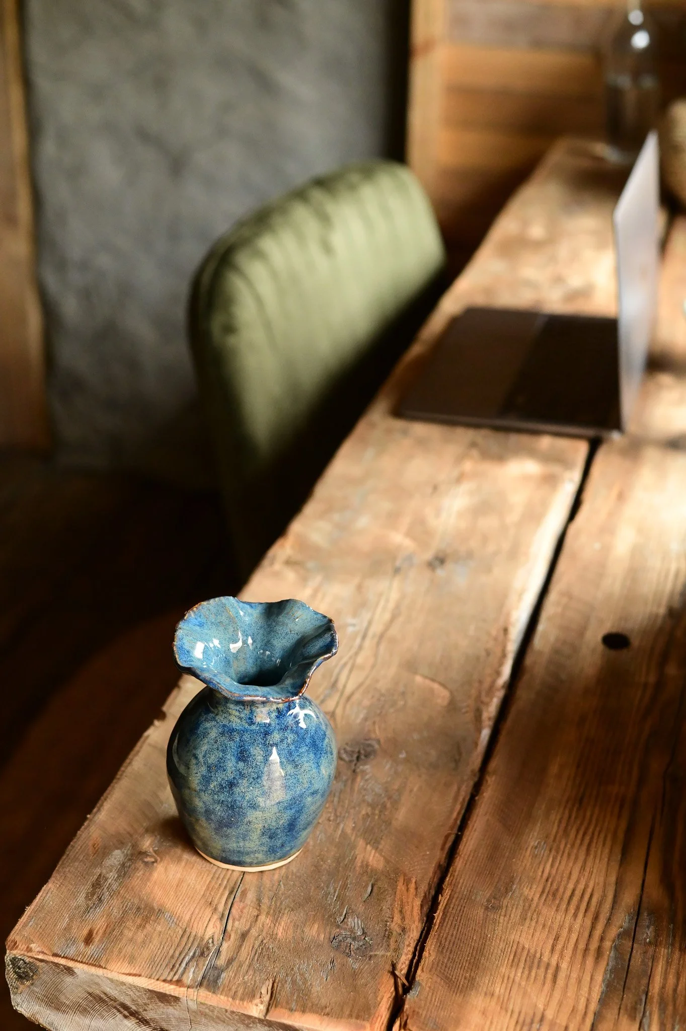 Textured Green Bowl £45.00 Hand-Carved Stoneware Mugs (Soon available) £45.00 Sold out Iridescent Purple Vase £220.00 Sold out Wide Blue and Copper Serving bowl £85.00 Bulbous Carved Vase with Copper Rim and Interior £195.00 Tall Copper & Cream lamp base with Ruffled Rim (soon available with light fittings and lamp shade) £195.00 Sold out Blue Ruffled-Edge Vase £95.00 Sold out Green Spiral Vase £195.00 Tall Flared Vase with Crawling Glaze £135.00