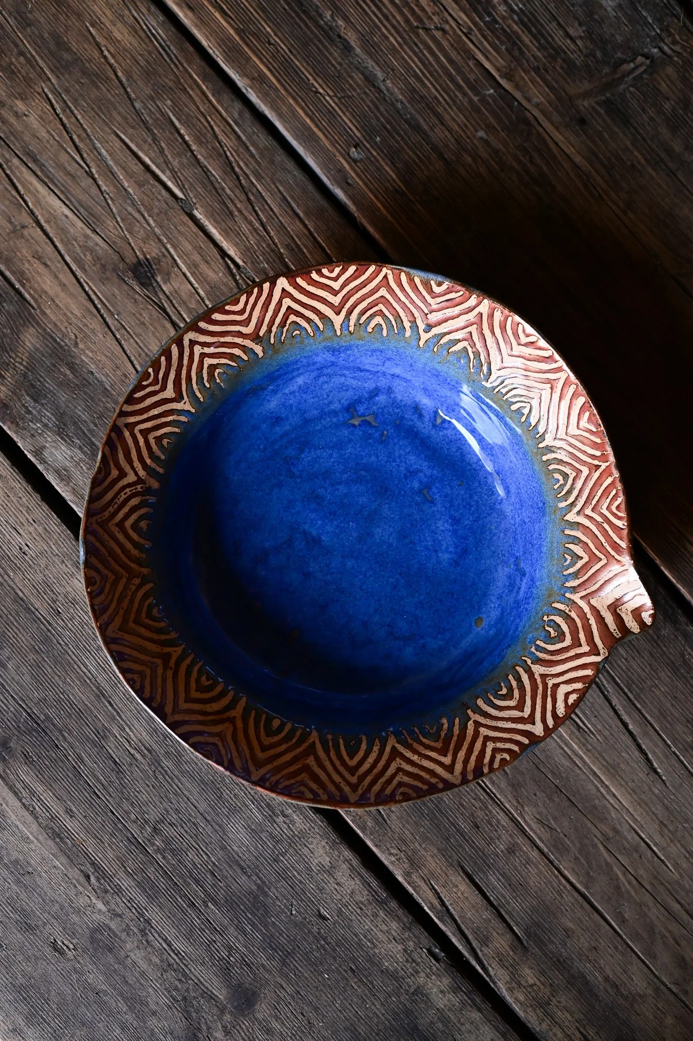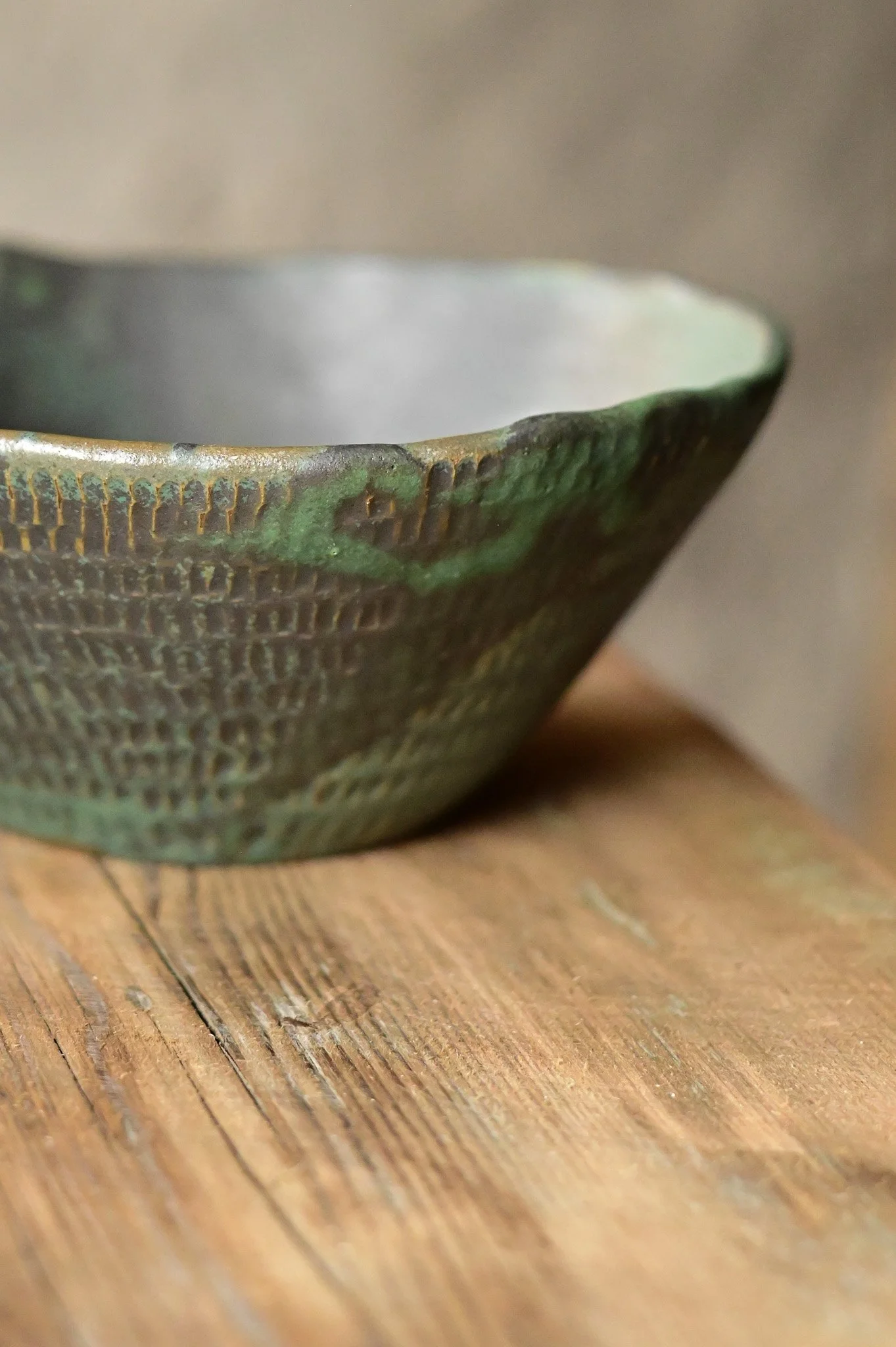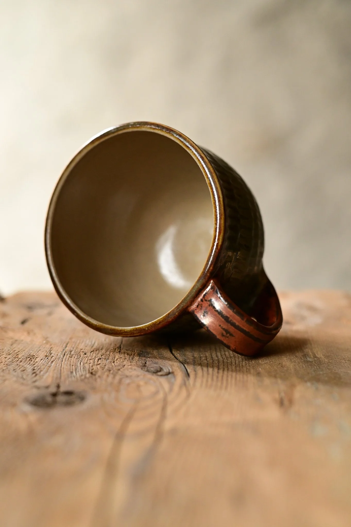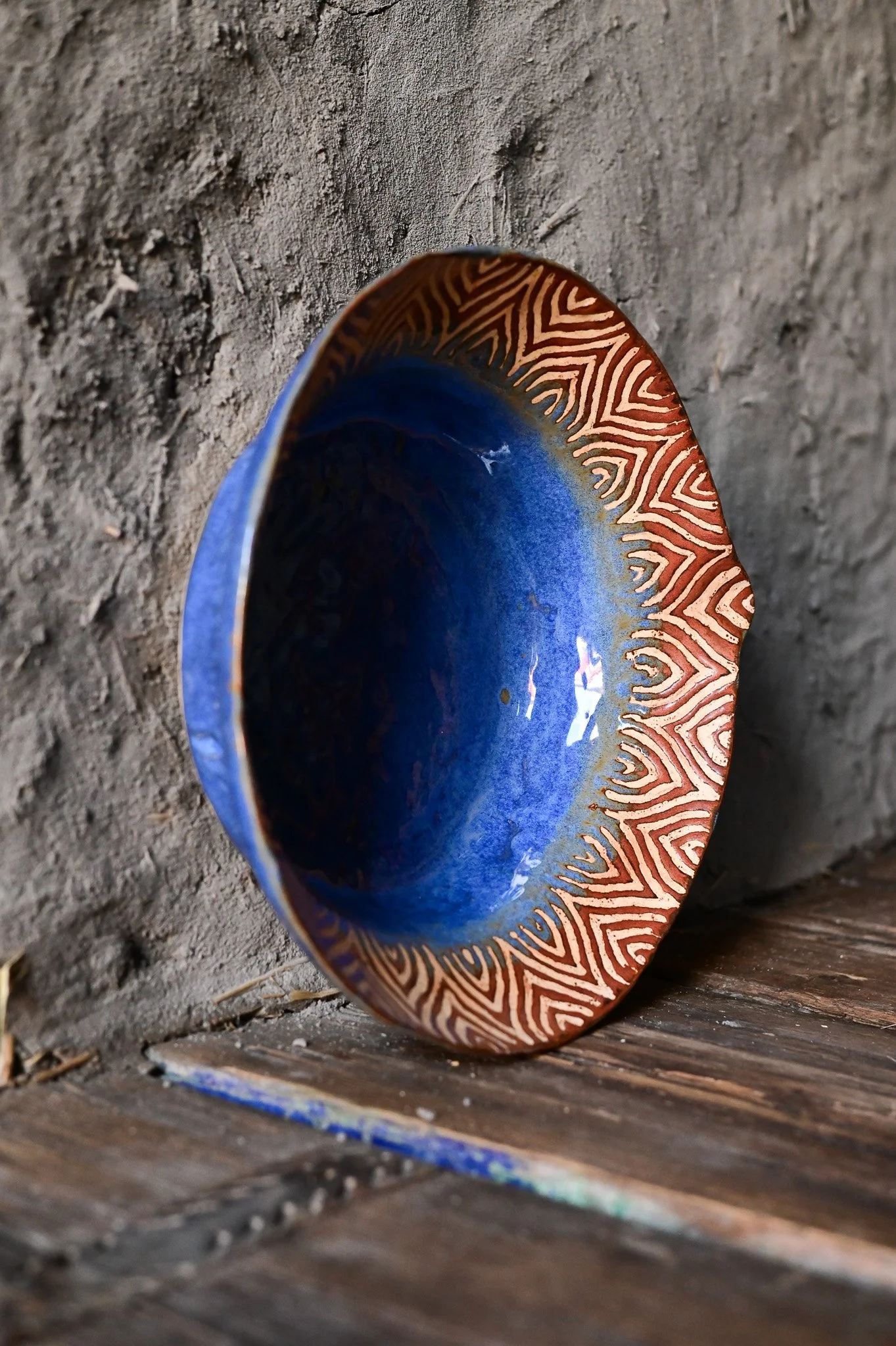 Textured Green Bowl £45.00 Hand-Carved Stoneware Mugs (Soon available) £45.00 Sold out Iridescent Purple Vase £220.00 Sold out Wide Blue and Copper Serving bowl £85.00 Bulbous Carved Vase with Copper Rim and Interior £195.00 Tall Copper & Cream lamp base with Ruffled Rim (soon available with light fittings and lamp shade) £195.00 Sold out Blue Ruffled-Edge Vase £95.00 Sold out Green Spiral Vase £195.00 Tall Flared Vase with Crawling Glaze £135.00